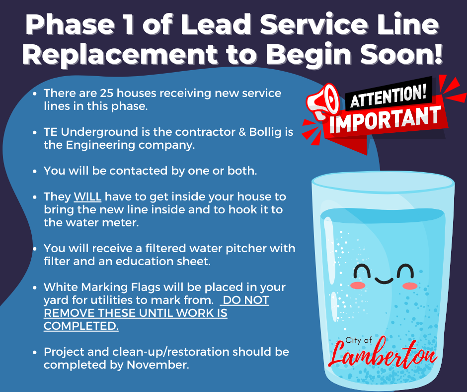 The City of Lamberton has completed and submitted our service line materials inventory to the Minnesota Department of Health. The service line inventory is publicly available and you can check the materials for your service line by visiting the Lead Inventory Tracking Tool (LITT) at https://maps.umn.edu/LSL/ you may also contact us at City Hall 507-752-7601 or clerk@lamberotnmn.com. To complete the service line inventoryif you have not done so already.